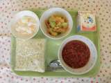 ★今日の献立 ・ソフト麺ミートソース ・牛乳 ・パリパリサラダ ・フルーツヨー...
