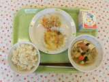★今日の献立 ・ミルクパン ・牛乳 ・豆腐のミートグラタン ・ポテト入りフレン...