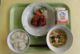 ★今日の献立 ・根菜ドライカレー ・大根とひじきのサラダ ・いちご ・牛乳 ...