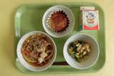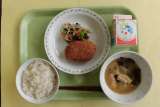 ★今日の献立 ・麦ごはん ・肉じゃがコロッケ ・野菜のからししょうゆかけ ・み...
