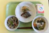 ★今日の献立 ・麦ごはん ・鮭のつけ焼き ・たくあん和え ・すいとん 1月2...