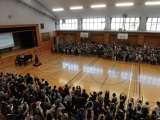 今朝は、体育館に全校児童が集まって音楽朝会がありました。「今日の日はさようなら」...