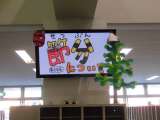 登校時の昇降口です。集会委員会が作成した節分に関する記事がデジタルサイネージで掲...