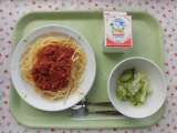 ○今日の献立 ・スパゲッティミートソース ・牛乳 ・フレンチサラダ ...