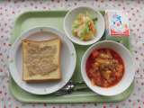 ○今日の献立 ・セサミトースト ・牛乳 ・チリコンカン ・キャベツサラ...