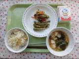 ○今日の献立 ・栗ごはん ・牛乳 ・にぎすの磯辺揚げ ・豆腐とわかめの...