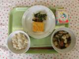 ★今日の献立 ・新しょうがごはん ・牛乳 ・高野豆腐入りたまご焼き ・野菜のご...