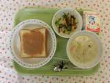 ★今日の献立 ・きな粉バタートースト ・牛乳 ・さつまいものシチュー ・くきわ...
