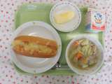 ★今日の献立 ・チリチーズコッペサンド ・牛乳 ・ポトフ ・りんご チリチー...