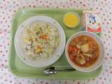 ★今日の献立 ・チキンピラフ ・牛乳 ・豆入りミネストローネ ・パンプキンプリ...