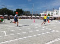 6年生のリレーです。全体で4回行います。抜いたり抜かれたり、みんな力いっぱい走り...