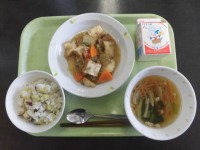 ★今日の献立・さつまいもごはん・生揚げのそぼろ煮・沢煮わん・牛乳 今日の主菜は、...