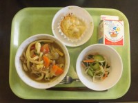 ★今日の献立・カレーうどん・和風サラダ・さつまいもの米粉蒸しパン・牛乳 今日は、...