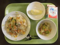 ★今日の献立・あんかけチャーハン・ごまじゃこサラダ・りんご・牛乳 今日の給食は、...