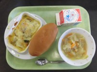 ★今日の献立・ミルクパン・パンプキングラタン・ひよこ豆とキャベツのスープ・牛乳 ...