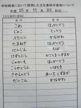 *ごはん *あじの南蛮焼き *じゃがいもの甘辛煮 *野菜のおかかあえ *牛乳