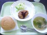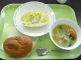 *丸パン *野菜スープ *さつまいもコロッケ *ボイルキャベツ *牛乳