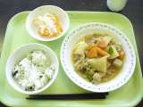 *わかめとじゃこのごはん *肉じゃがうま煮 *だいこんの甘酢がけ *牛乳