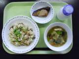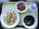 ※中華おこわ ※ごぼうとじゃこのかき揚げ ※えのきわかめスープ ※牛乳