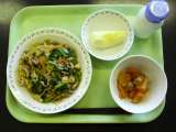 ※肉と青菜のあんかけそば ※じゃがいもケチャップあえ ※りんご ※牛乳