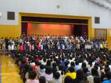 月曜日は日本語朝会でした。発表学年は6年生です。 各クラス、声を合わせて論語...