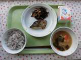 ○今日の献立 ・ゆかりごはん ・牛乳 ・さわらの塩こうじ焼き ・大豆入...
