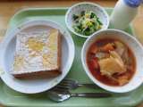 オレンジフレンチトースト ボルシチ ほうれん草のサラダ 牛乳