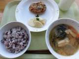 古代米ごはん 手作りさつまあげ モズク入り野菜のみそ汁 かぶのレモン醤油かけ 牛...