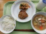 ごはん とりごぼうバーグ 石狩汁 切干大根の煮つけ 牛乳