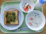 ガーリックトースト 白菜のクリームシチュー 野菜のピクルス 牛乳