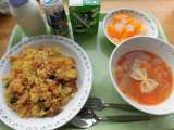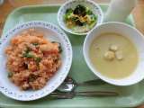 チキンライス カボチャのポタージュ ブロッコリーのサラダ 牛乳