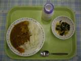 今日のメニューは「カレーライス、福神漬け、かいそうサラダ、牛乳」です。学校のカレ...