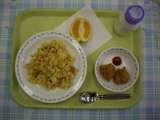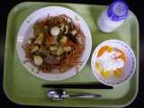今日のメニューは「ナシゴレン、とうふ入りチキンナゲット(ケチャップつき)、いよか...