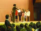 2月27日(月)の全校朝会で、「ともしび」の表彰があり、7名の子どもたちが表彰...