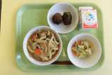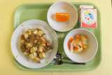 ★今日の献立 ・きつねうどん ・ポテトたこ揚げ ・シャキシャキ和え ・牛乳 ...
