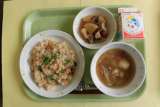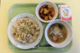★今日の献立 ・中華菜飯 ・春雨と豆腐のスープ ・大学芋 ・牛乳 今日の主食...