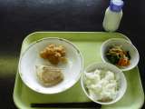 *青のりとじゃこのごはん *千草焼き *白いんげん豆の煮豆 *ごま酢あえ *牛乳
