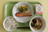 ★今日の献立 ・麦ごはん ・鮭のおろしだき ・野菜のごまあえ ・みそ汁 ・牛乳...