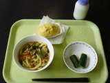 *カレーうどん *きゅうりの甘酢かけ *チーズ入り蒸しパン *牛乳