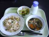 *鮭ピラフ *コンソメスープ *フルーツヨーグルト *牛乳