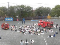 2年生の「はたらく消防 写生会」です。本物の消防車と消防隊員の方が来てくださいま...
