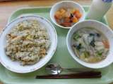 (食育の日・秋田県の郷土料理から) ふき入り山菜おこわ いかのカリンあげ 野菜の...