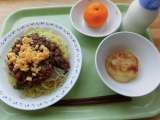 炒めジャージャーめん ベイクドポテト 冷凍みかん 牛乳