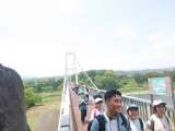 いい天気過ぎて暑くなりました。大きな吊り橋の上は風が強いので、帽子が飛ばないよう...