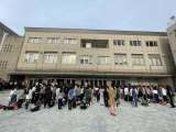 国会見学を終えて、外に出てきたところで少し小雨が降り出しました。集合写真はなんと...
