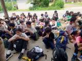 予定より30分ほど遅れました。田園プラザの芝生のところで、お弁当を食べています。...