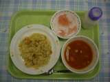 6月8日のメニューは「ツナライス、ミネストローネ、牛乳、あじさいゼリー」です。あ...