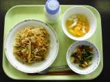 ※チンジャオロースー麺 ※青菜のごまじょうゆ ※乳乃豆腐 ※牛乳