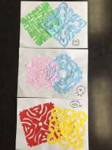 家庭学習で作ってきた「チョッキンパッでかざろう」は力作が揃いました。 どの子も楽...