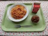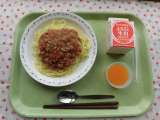 ○今日の献立 ・ナポリタン ・牛乳 ・おからマフィン 給食で使用す...